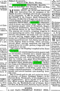 In the mid-18thC there were said to be 5 breweries in the village. Bethune Leggate’s Hope Brewery was located at 6-8 East Street and at the opposite end the Clarendon is known to have been an early brewhouse, and in the 1881 census map tenuously shows yet another operating near to Rockstone House on the corner of East Stree/High Street.